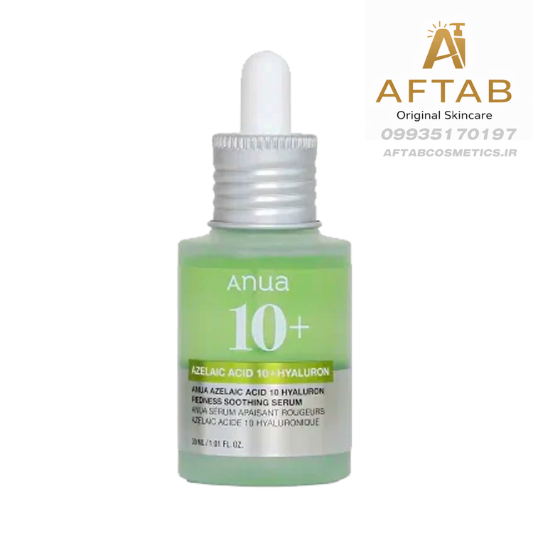 سرم تسکین دهنده قرمزی آزلائیک اسید 10+ و هیالورون آنوا